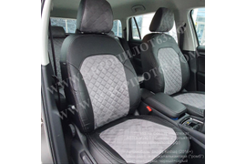 Skoda Kodiaq (2016+) (экокожа+алькантара ромб, черный+серый)