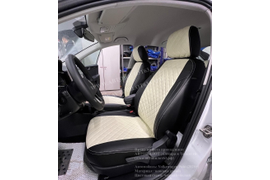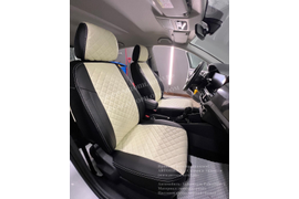 Volkswagen Polo [2020+] (с задним подлокотником) (экокожа ромб, черный+белый)