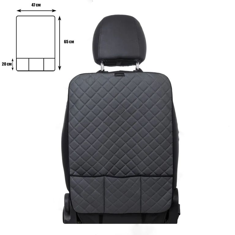 Накидка предназначена для защиты спинки передних сидений автомобиля от обуви ребенка, от домашних животных, и т.д.
